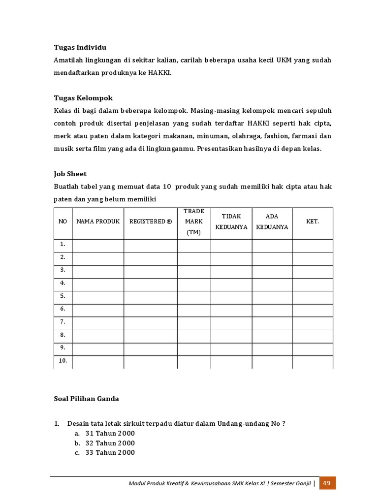 Contoh produk yang memiliki hak paten. Menurut sistem registrasi setiap permohonan pendaftaran paten diberi paten oleh kantor paten secara otomis. Karena mendaftar hak paten bagi sebagian orang tergolong rumit dan mahal. Sekarang tanda v legal telah mendapatkan hak paten dari menkumham. Tanda v legal merupakan tanda kesesuaian verifikasi legalitas kayu yang dibubuhkan pada kayu produk kayu atau kemasannya yang menyatakan bahwa kayu dan produk kayu telah memenuhi standar pengelolaan hutan produksi lestari atau standar verifikasi legalitas kayu. Dibawah ini adalah 10 contoh hak paten sederhana dan biasa yang sudah dipatenakan. Piko adalah sebuah merek yang terdaftar di hki sebagai suatu penamaan atas produk dalam kategori kantong kemasan yang terdaftar atas nama pt norta multiplastindo.