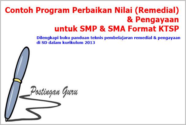 Contoh program remedial dan pengayaan smp. Diharapkan format remedial dan pengayaan kurikulum 2013 ini merupakan salah referensi yang baik dan benar sesuai harapan anda bisa digunakan untuk contoh format doc download kurikulum 2013 microsoft word remedial dan pengayaan dengan demikian file tersebut bisa memenuhi dan mengakhiri pencarian. Download format doc pdf dan xls. Terima kasih program remedial dan pengayaannya sangat membantu saya ikut copytapi ada sedikit koreksi saya kira untuk kolom keterangan di program remedial belum ditulis tuntas kalau nilainya belum 100 karena sepengetahuan saya dari pelatihan di ktsp bahwa tuntas itu kalau sudah mencapai nilai sempurna 100. Berikut ini contoh program remedial dan pengayaan kurikulum 2013 revisi terbaru tahun 2019 2020 untuk smp sma sd. Penjelasan tentang program remedial dan pengayaan kurikulum 2013 sudah kami jelaskan pada. Berkas sekolah contoh program remedial dan pengayaan ktsp dan kurikulum 2013 ini sengaja kami bagikan kepada rekan guru di sd smp sma smk mi mts dan ma sebagai contoh dalam menyusun kegiatan remedial sebagai program lanjutan untuk siswa dan siswi yang kekurangan nilai.