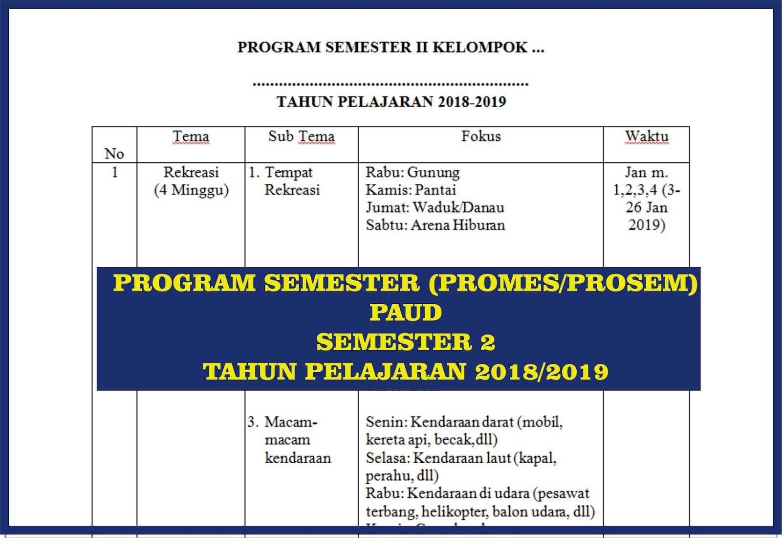 Contoh program semester paud. Adapun pejelasan tentang program semester prosem akan saya jabarkan di bawah ini. Format skpbm semester 1 dan 2 format wordsdocx contoh format jadwal pelajaran kelas bawah tahun 20172018 format excelxlsx download administrasi guru paud super lengkap download aplikasi administrasi guru wali kelas. Program semester atau perencanaan semeter paud merupakan program pembelajaran yang berisi jaringan jaringan tema yang ditata secara urut dan sistematis alokasi waktu yang diperlukan untuk setiap jaringan tema dan sebarannya ke dalam semester 1 dan semester 2. Program semester tk yang akan admin bagikan ini disusun sesuai dengan kurikulum 2013 paud. Contoh program semester k13 paud tahun 2017 2018 lengkap membahas tentang rancangan pembelajaran untuk pendidikan anak usia dini paud ada tiga jenis perencanaan pembelajaran yang wajib di susun oleh guru paud secara mandiri berikut rancangan pembelajaran yang dimaksud atau isi dari dokumen 2 kurikulum paud diantara nya. Berikut ini contoh program semester tk kelompok b 5 6 tahun selama 1 tahun dua semester.