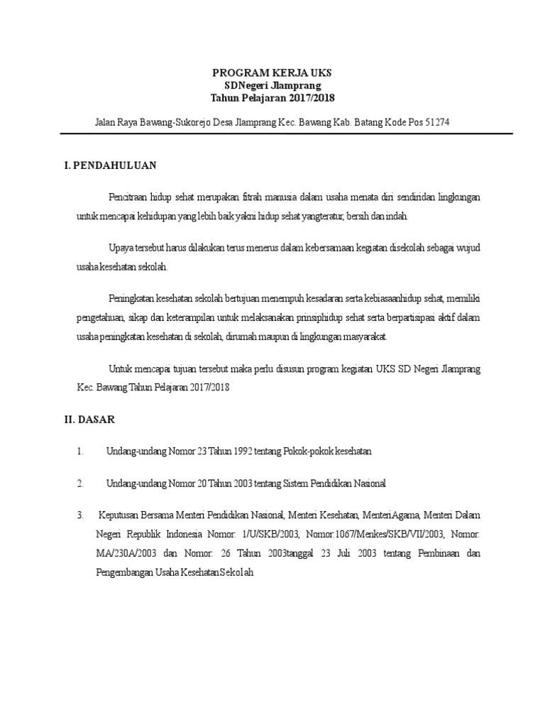 Program pembinaan dan pengembangan uks meliputi. Sd muhammadiyahammadiyah al mujahidin wonosari. Uks merupakan salahsatu program ekstrakurikuler yang sangat lazim ditiap sekolah mengingat peran uks yang sangat penting dalam memberikan pembelajaran siswa dibidang kesehatan. Program pembinaan pembina uks ketenagaan. Contoh program kerja uks usaha kesehatan siswa 2017 jenjang sd smp sma smk ini merupakan file yang mungkin anda butuhkan sebagai pembina ekstrakurikuler tersebut. Program kerja uks terbaru tahun 20182019 administrasi guru kelas ini ditujukan bagi siapa saja yang membutuhkan untuk digunakan sebagai referensi sesuai keperluan baik itu di lingkungan sekolah pendidikan dan kesehatan ataupun umum untuk guru bahkan operator sekolah.