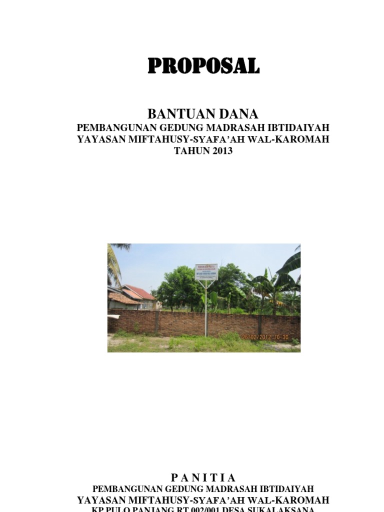 Melihat kondisi wilayah kami yang sangat membutuhkan sarana pendidikan dana tersebut akan kami gunakan untuk pekerjaan pembangunan gedung madrasah sebagimana tertuang dalam usulan rencana kegiatan terlampir. Contoh proposal permohonan bantuan dana pembangunan madrasah. Besarnya dana yang dibutuhkan dalam membangun masjid badrus salam adalah kurang lebih sebesar rp. Dukuh mojokulon desa muryolobo kec. Prestasi sekolah baik dibidang akademik maupun non akademik foto foto sarana dan prasarana dan lain lain. Sebagai bahan pertimbangan kami juga menyertakan antara lain.