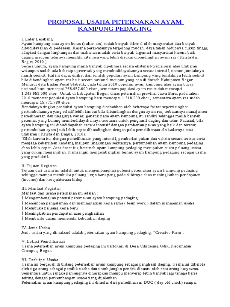 Contoh proposal usaha ayam petelur pdf. Dapat menjaga kelangsungan usaha dan mengembangkannya. Contoh proposal usaha budidaya ayam petelur terbaru geliat usaha peternakan di indonesia semakin hari semakin ramai diperbincangkan dan digeluti oleh peminatnya bukan hanya perorangan juga atas nama kelompok maupun kelembagaan yang bisa dijadikan sebagai mata pencaharian baru dan membuka peluang usaha baru bagi masyarakat sekitarnya. Ayam ras petelur usaha ternak ayam ras petelur untuk saat ini dan yang akan datang cukup menjanjikan karena seiring dengan pertambahan jumlah penduduk permintaan akan telur semakin bertambah. Usaha skala kecil ini bergerak di bidang peternakan ayam petelur dan merupakan usaha yang cukup sederhana serta mudah untuk ditekuni. Jadi modal bisnis ayam petelur yang perlu dipersiapkan untuk 300 ekor adalah rp10361000 rp18840000 rp29201000. Silahkan dipelajari untuk yang ingin membuka wirausaha pullet.