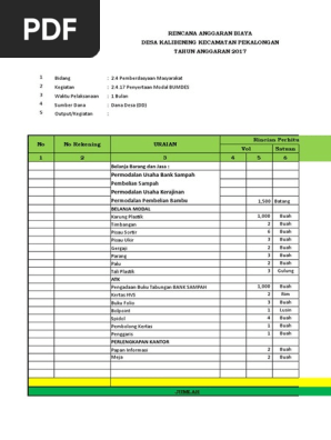 Aplikasi keuangan desa 2019 excel gratisv21 dari blog format administrasi desa baru contoh rab operasional perkantoran terbaru. Jika ada kendala saran atau kritikan yang membangun jangan sungkan untuk memberitahu kami. Salah satu syarat dari dana desa untuk kegiatan padat karya cash tunai adalah jumlah upah minimal 30 dari pagu anggaran kegiatan fisik. Demikian ulasan artikel yang berjudul contoh format rab pembangunan terminal desa format excel semoga berguna bagi anda. Seperti contoh format rpjmdes rkpdes apbdes rab desa rka desa rkkd sk sk surat menyurat di desa lpj spj proposal perdes perkades dan administrasi desa lainnya. 200 contoh rab lengkap silahkan di downloadunduh contoh format rab kegiatan operasional bpd format excelxls diatas.