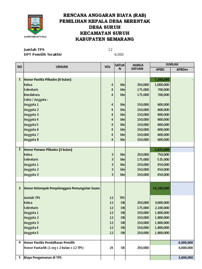 Contoh rab desa tanggap covid 19. Contoh rab pilkades pemilihan kepala desa format excel pemilihan kepala desa merupakan suatu proses demokrasi di tingkat desa dimana masyarakat desa yang memiliki hak pilih menentukan pilihan terhadap calon kepala desa yang adaadapun untuk pelaksanaan pemilihan kepala desa diperlukan adanya perencaaan yang baik serta tercukupinya anggaran untuk pelaksanaan.