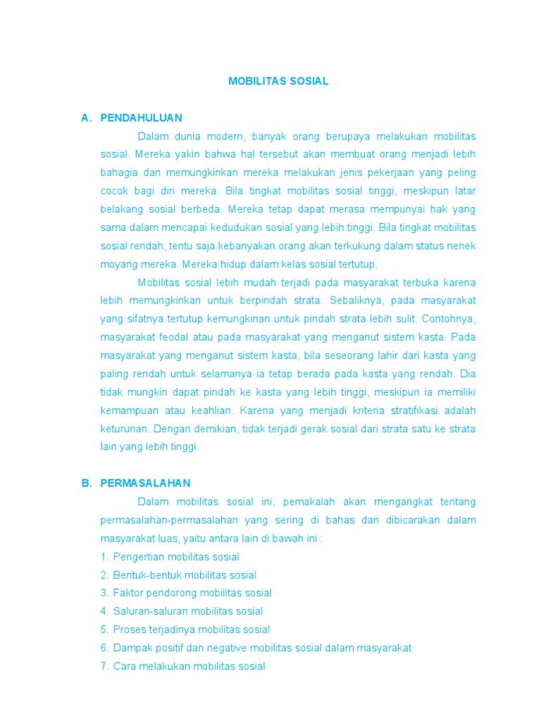 Proses mobilitas sosial vertikal ini disebut dengan nama social circulation. Bentuk dan contoh mobilitas sosial 1.