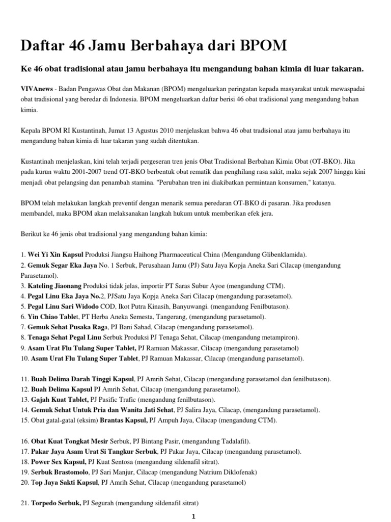 Berikut adalah senarai produk yang diharamkan oleh kementerian kesihatan malaysia kkm sepertimana disiarkan bahagian perkhidmatan farmasi kementerian kesihatan malaysia. Obat penggemuk badan di apotik yang ke 4 adalah samyun wan yang berfungsi sebagai perangsang nafsu makan yang di dalamnya memiliki kandungan. Khasiat samyun wan original nafsu makan bertambah dengan nafsu makan yang lebih baik tubuh kita akan mendapatkan asupan gizi dan nilai kalori yang mencukupi memperbaiki metabolisme tubuh perbaikan metabolisme tubuh banyak sekali orang yang pola kehidupannya lebih fit dan baik misalnya saja ada yang pernah sinusitis dan flue bisa sembuh sering alergi jadi tidak lagi sejak makan obat ini. Beberapa efek samping yang dirasakan setelah mengkonsumsi samyun wan di antaranya. Wwwnpramohgovmy sebuah biro pengawalan farmasetikal kebangsaan malaysia dengan no. Berikut daftar jamu yang berbahaya dan beredar di pasaran versi yayasan pemberdayaan konsumen kesehatan indonesia ypkki.