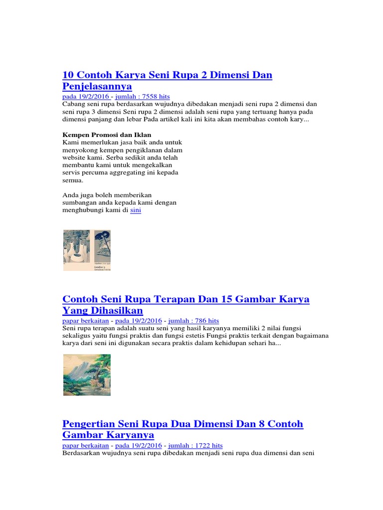 Kami tidak hanya menyajikan contoh seni rupa 2 dimensi melainkan juga dengan contoh seni rupa 3 dimensi. Seni rupa 2 dimensi pengertian unsur teknik contoh gambar untuk pembahasan kali ini kami akan mengulas mengenai seni rupa 2 dimensi yang dimana dalam hal ini meliputi. Mosaik merupakan karya seni yang pertama kali ditemukan pada daerah mesopotamia pada abad ke 3 sm dan berfungsi sebagai hiasan pada dinding gereja atau masjid. Dari segmen yang sangat beragam di dalam rumah luar rumah museum tempat tempat wisata dan alam murni sekitar. Dalam seni rupa simbol bisa kita jumpai di karya seni rupa 2 dimensi maupun 3 dimensi. Beberapa fungsi seni rupa misalnya sebagai ungkapan ekspresi seniman menyampaikan nilai nilai budaya membuat karya untuk dinikmati orang lain sebagai dekorasi dan pajangan sebagai ritual keagamaan dan lain sebagainya.