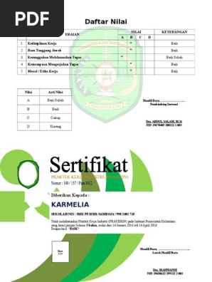 Contoh Sertifikat Praktek Kerja Industri Prakerin Smk Di