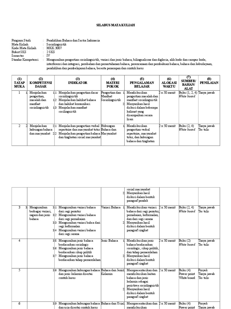 Contoh silabus mata kuliah. Waktu perkuliahan. Silabus suatu mata kuliah adalah suatu satuan instrumen umum pembelajaran tertulis berbentuk lembaran tempat tercantum informasi verbal mengenai garis garis besar isi dan prosedur belajar mengajar satu semester dan disusun secara prosedural dan hierarkis. 00 31 juli 2008 hal. Menanggapi dan mengamalkan ajaran agama yang. Contoh silabus dan makalah pendidikan bahasa arab jurusan pendidikan bahasa arab. Melalui mata kuliah ini mahasiswa program pascasarjana stt iksm menggumuli beberapa substansi kajian mata kuliah metodologi pendidikan agama kristen.