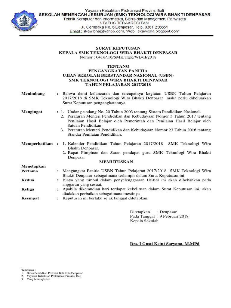 Contoh sk panitia unbk 2017. Untuk susunan kepanitiaan ujian nasional un ini biasanya selalu disatukan dengan ujian sekolah ujian. Download contoh sk panitia unbk sma tahun 2017 versi 1 download contoh surat keputusan susunan panitia unbk sma tahun 2017 versi 2 contoh sk panitia unbk smamasmk 2017 ini merupakan salah referensi yang baik dan benar sesuai harapan anda bisa digunakan untuk madrasah sk panitia sma smk unbk dengan demikian file tersebut bisa memenuhi dan mengakhiri pencarian di google. Bagi guru urusan kurikulum ataupun rekan guru yang ditugasi untuk membuat sk pembentukan panitia penyelenggara unbk di tingkat sekolah sebagai penugasan untuk guru berikut ini kami bagikan salah satu contoh sk panitia ujian nasional berbasis komputerunbk tahun pelajaran 20172018 yang dapat di sesuaikan dengan keadaan di sekolah masing masing. Contoh sk panitia un smpmts smasmkma 2017 ini merupakan salah referensi yang baik dan benar sesuai harapan anda bisa digunakan untuk contoh madrasah sdmi sdlb sk panitia sma smk smpmts ujian nasional ujian sekolah dengan demikian file tersebut bisa memenuhi dan mengakhiri pencarian di google. Download contoh sk panitia unbk 2018 smp sma smk sederajat format word jumat november 10 2017 berikut ini salah satu berkas ujian yakni contoh sk panitia unbk tahun 2018 atau tahun pelajaran 20172018 untuk smp sma smk sederajat format word sebagai persiapan panitia ujian lengkap dengan susunan dan tugas pokok dan fungsi di setiap jabatan yang ada. Download contoh sk panitia unbk smksmama 2017 berikut ini kami akan membagikan satu file administrasi bagi kepala sekolah guna mempersiapkan untuk memberikan tugas kepada guru persiapan un dan karena file ini bisa kita gunakan sebagai surat tugas penitia dalam pelaksanaan ujian nasional berbasis komputer unbkmaka file ini untuk sekolah yang menyelengarakan unbk pada ajaran 20162017.