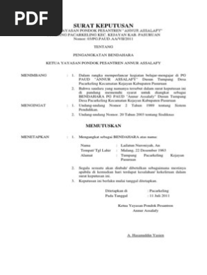 Dringu 01 juli 201 1. Contoh sk pengangkatan kepala sekolah madrasah oleh yayasan ini merupakan file terbaru yang akan saya bagikan secara gratis dalam kesempatan kali ini. Contoh sk pengangkatan kepala sekolahmadrasah swasta adalah contoh surat keputusan dariyang dibuat oleh ketua yayasan untuk mengangkat kepala sekolah sditsmpitsmasmk atau kepala madrasah mimtsma berstatus swasta yang diselenggarakan pada suatu yayasan pendidikan. Contoh sk guru honorer terbaru sd smp smasmk tahun 20192020 merupakan sebuah surat keputusan yang diberikan oleh kepala sekolah untuk memenuhi arsip administrasi atau sebagai bukti bagi gtt honor yang akan mengabdi di sekolah tersebutnah bagi anda yang ingin membuat sk namun tidak tahu caranya disini admin kan membagikan conoh sk honorergtt yang dapat anda unduh diakhir postingan ini. Bilamana ternyata terdapat kekeliruan dan atau kekurangan akan dibetulkan dikemudian hari. Kop surat surat keputusan nomor.