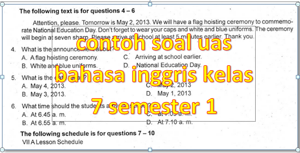 Contoh Soal Bahasa Inggris Kelas 7 Smp M Ts Try Out