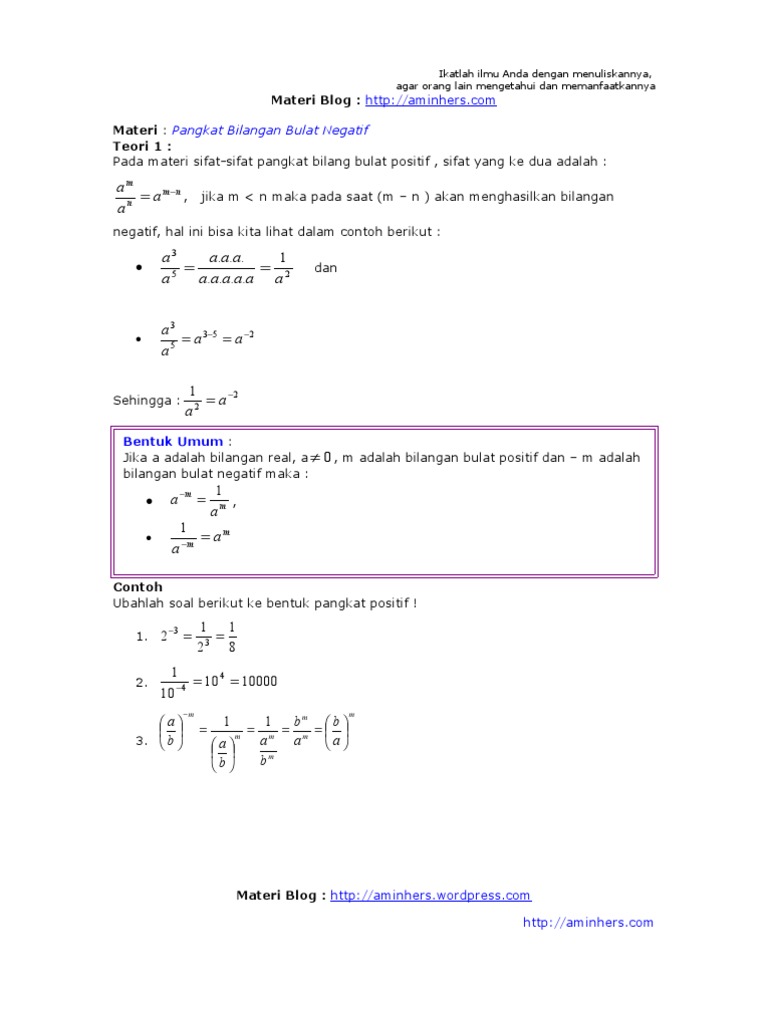 Pengertian Bilangan Berpangkat Bulat Negatif Beserta Contoh