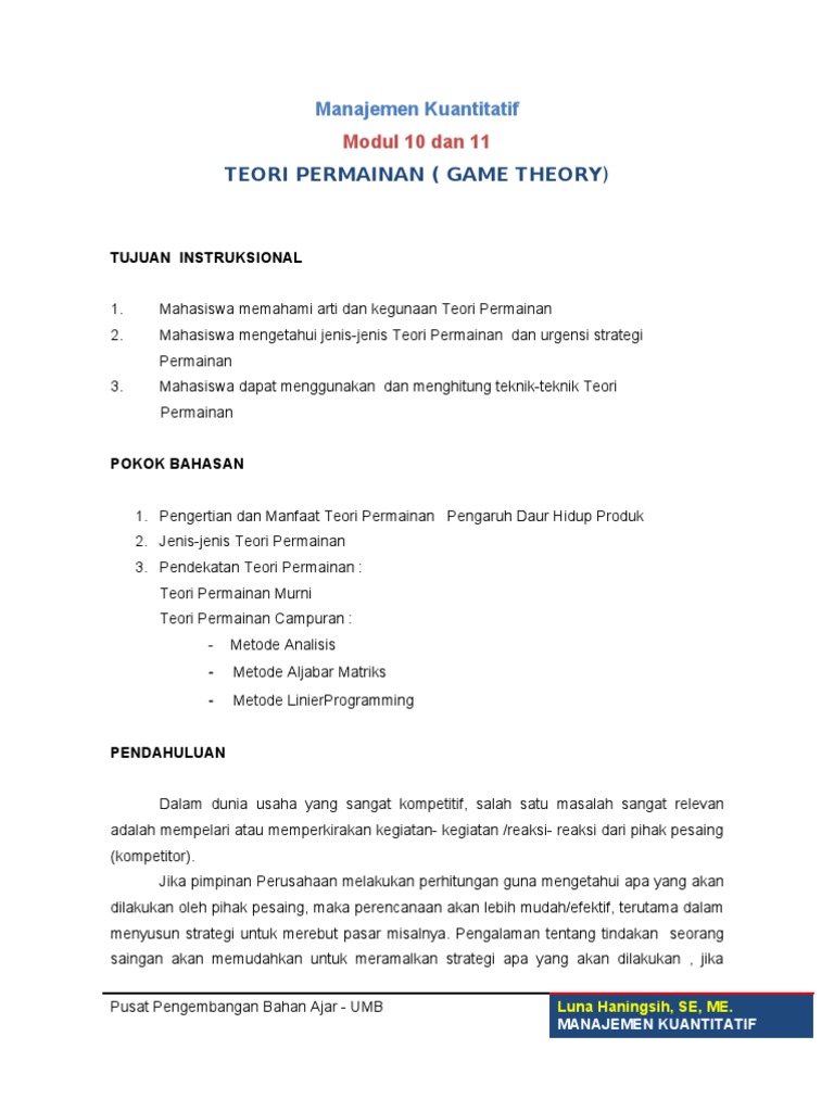 Teori ini dikembangkan untk menganalisa proses pengambilan keputusan yaitu strategi optimum dari situasi situasi persaingan yang berbeda beda dan melibatkan dua atau lebih kepentingan. Sedangkan kartono menjelaskan bahwa teori permainan game theory merupakan teori yang menggunakan pendekatan matematis dalam merumuskan situasi persaingan dan konflik antara berbagai kepentingan. Contoh soal short message service docsharetips rpp kelas x k13 ungkapan ucapan selamat congratulations soal dan jawaban ujian nasional smp 2018 bahasa inggris rabu 25 englishahkam contoh teks advertisement smp beserta kunci jawaban soal uh b inggris x contoh soal pilihan ganda bahasa inggris dan jawabannya kelas x soal ulangan harian 1 sem ganjil contoh soal past perfect tense dan jawabannya. Riset operasi penegrtian tahapan model tujuan contoh game theory riset operasi bisnis.