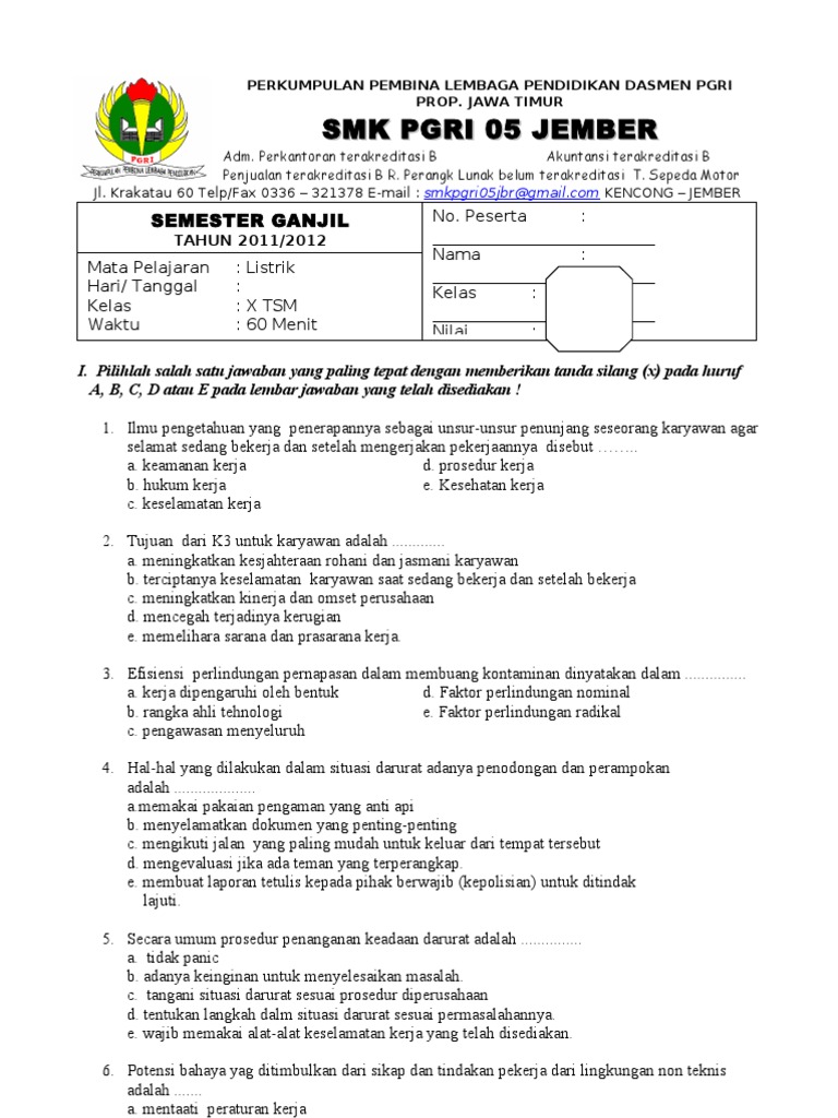 Contoh soal pilihan ganda peralatan tempat kerja lengkap dengan jawaban. K3 merupakan perkembangan dari. Soal essay tentang narkoba beserta jawabannya. Admin blog contoh soal terbaru 2019 juga mengumpulkan gambar gambar lainnya terkait contoh soal k3 listrik beserta jawabannya dibawah ini. Contoh soal negosiasi pilihan ganda beserta jawabannya. Contoh soal test ujian k3 dan jawabannya wadahtekno.