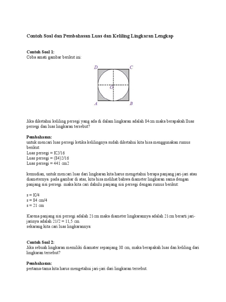 5 Contoh Soal Lingkaran Pengertian Rumus Luas Dan Lingkaran