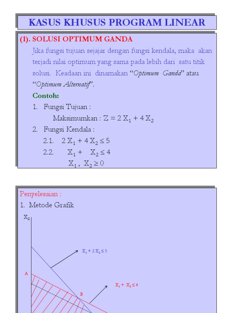 Metode simpleks dikembangkan pertama kali oleh george dantzing pada tahun 1947 sifat dari metode ini adalah iterative dimana penyelesaian masalah melaui tahapan perhitungan yang berulang ulang sampai tercapai solusi optimum. Soal dan jawaban program linear menggunakan metode grafik dan simpleks diketahui. Itulah yang dapat kami bagikan terkait contoh soal linear programming metode grafik dan simpleks. Metode pemecahan persoalan program linear yang lebih kompleksluas dan besar yg dengan metode aljabar sederhana dan grafik sulit dan tidak dapat diandalkan. Itulah berbagi kumpulan data terkait contoh soal linear programming metode grafik dan simpleks. Contoh soal linear programming.
