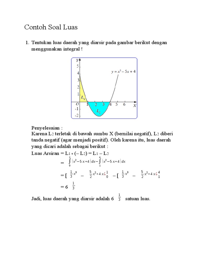 Contoh soal luas daerah. Luas daerah tersebut adalah. Contoh soal 1 di atas akan dikerjakan dengan dua cara. Pembahasan soal luas daerah yang lain bisa disimak di. Kemudian akan dibandingkan kedua hasilnya. Contoh soal 3. Misalkan persamaan garis kita tulis menjadi fx 2x 17 dan parabola menjadi gx x 2 25.