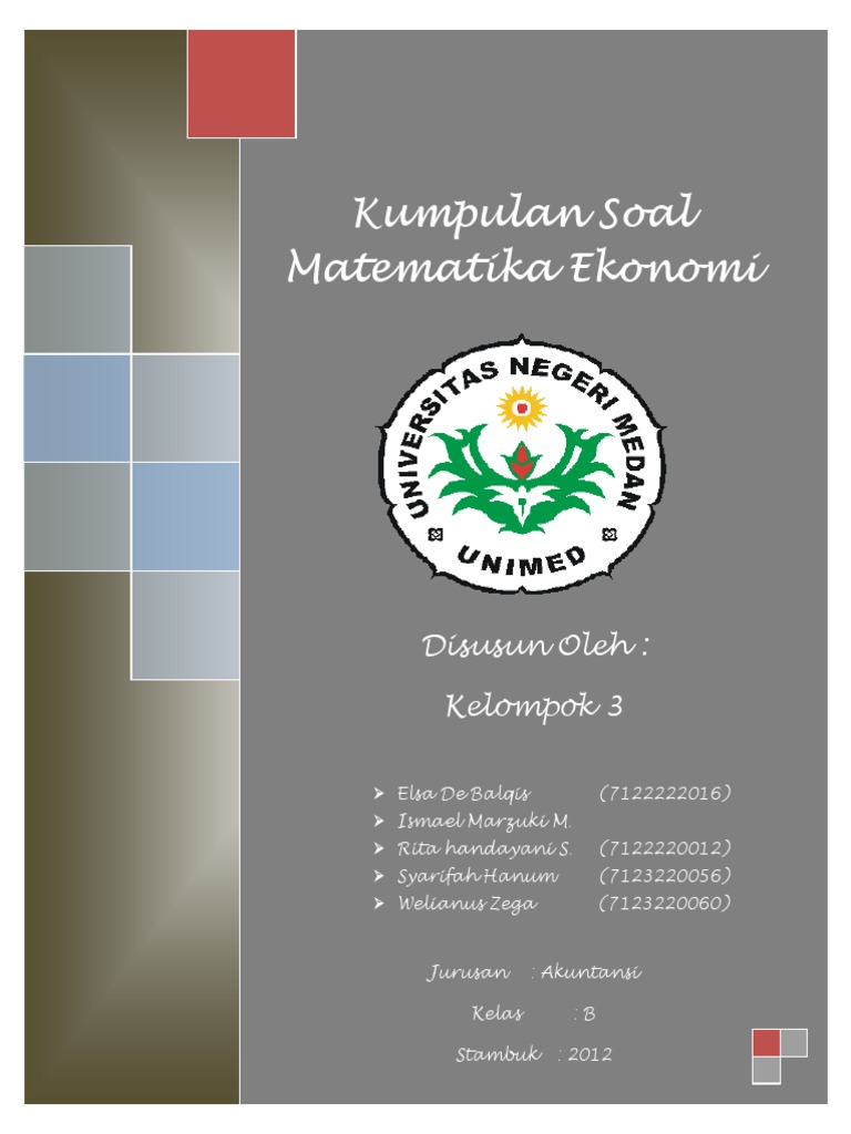Contoh soal dan jawaban matematika ekonomi 2 modul 14. Materi kuliah matematika ekonomi tingkat 1 semester 1 friday january 25 2013. Semoga saja dengan adanya soal latihan matematika ini anak anak lebih dapat berpikir dengan sendirinya dan menimbulkan jiwa ingin mengetahui mereka untuk orang tua agar membimbing anak nya dengan sabar agar mereka lebih memahami dan lebih menyukai tentang matematika. Esti sari dewi ap npm. Contoh file soal uts lengkap kelas 1 6 sdmi semua mata pelajaran 20162017 berikut ini adalah kumpulan dari berbagi sumber tentang contoh soal dan pembahasan matematika ekonomi semester 1 yang bisa gunakan untuk bank soaldownloadsd dan diunduh secara gratis dengan menekan tombol download biru dibawah ini. 1ea12 15 november 2010.