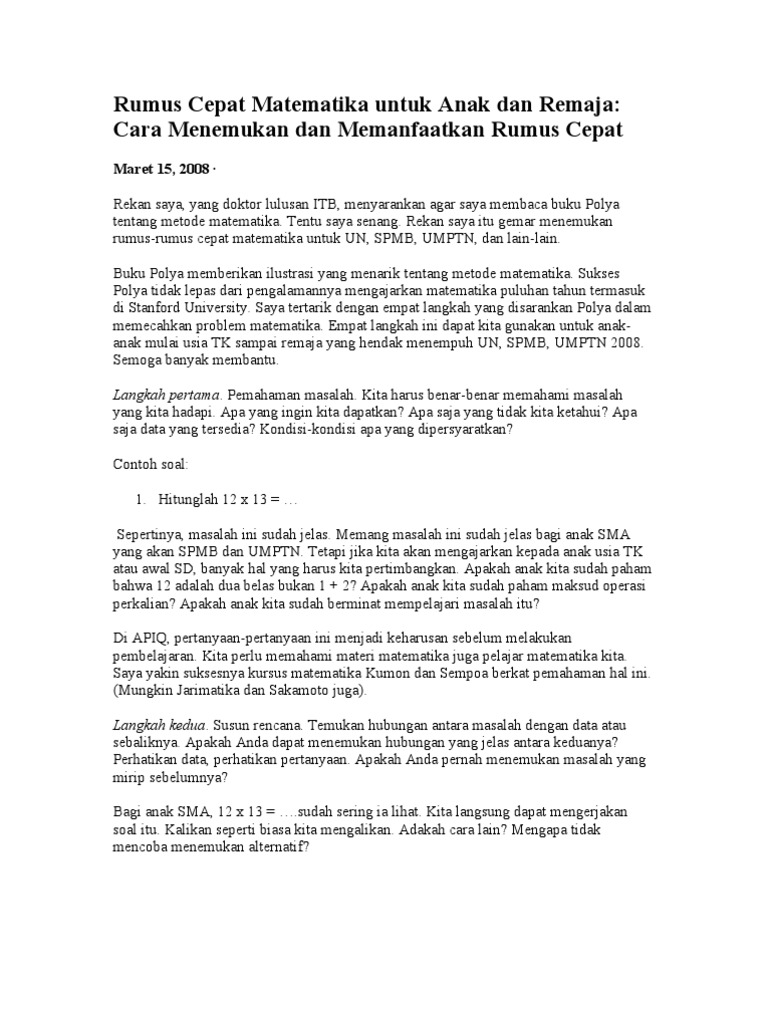 Contoh Soal Lomba Matematika Tk B