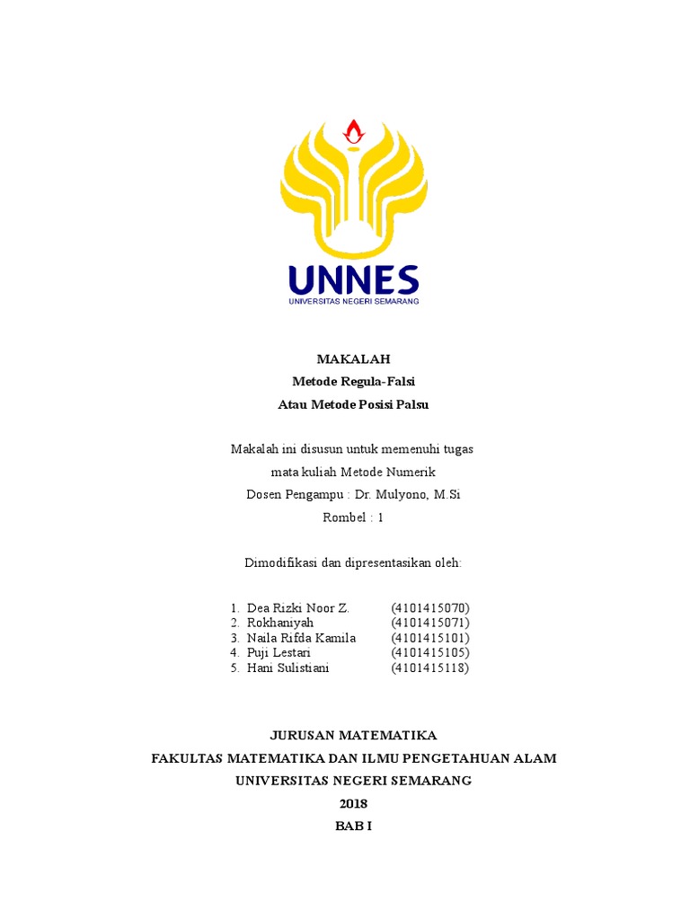 Contoh soal cari akar persamaan x3 5x 1 dengan menggunakan metode regula falsi. Misal a 2 dan b 5 e 0001. Metode regula falsi merupakan salah satu metode tertutup untuk menentukan solusi akar dari persamaan non linier. Metode newton rapshon 4. Makalah metode numerik regula falsi dalam menyelesaikan persamaan non linier kita sering menemukan fungsi yang rumit sehingga untuk mencari penyelesaiannya atau untuk mencari fx 0 kita perlu menggunakan cara pendekatan atau cara dengan metode. 0 response to contoh soal metode regula falsi post a comment.