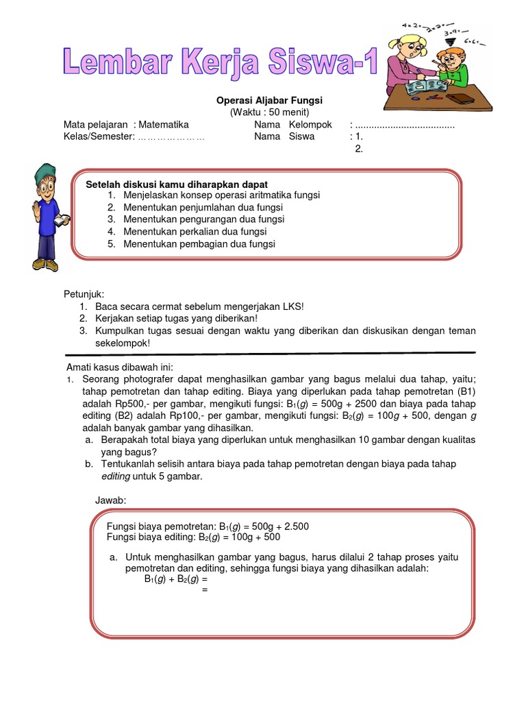 Contoh soal operasi aljabar pada fungsi. Operasi aljabar pada fungsi supaya lebih memahami mengenai operasi aljabar pada fungsi. Kali ini kita akan membahas tentang operasi aljabar fungsi. Diketahui fungsi fx x 2 2 dan gx 2x 4 2 maka tentukanlah hasil dari. Pada pertemuan sebelumnya kita sudah pernah membahas relasi dan fungsi beserta macam macamnya di pertemuan ini kita akan menambahkan sedikit materi fungsi yaitu sifat yang ada pada fungsi itu sendiri. Kali ini kita akan bahas bersama sama soal materi komposisi lengkap dengan cara penyelesaiannya dan contoh latihan soal. Jika diketahui fx x² 25 dan gx x 5.