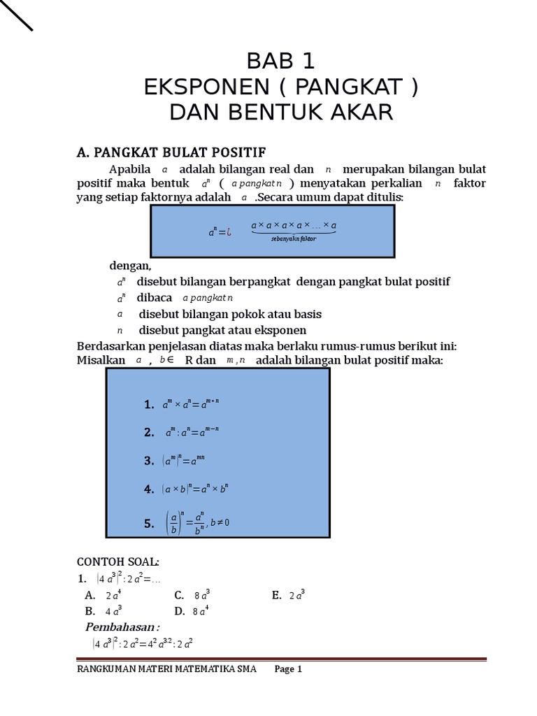 Bilangan Berpangkat Dan Bertuk Akar Kelas 9 Semester 1 K 13