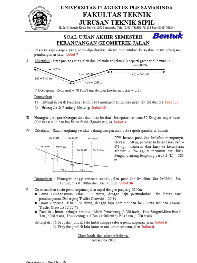 Contoh soal perencanaan geometrik jalan. Nah disini saya coba memberikan contoh perhitungannya. Bukaan pemisah jalur fungsi jalan kolektor penampang melintang lebar jalur lalu lintas 7 m lebar bahu efektif 15 m pada kedua sisi tidak ada medan alinemen datar hambatan samping rendah. Perencanaan geometrik jalan pada jurusan teknik sipil fakultas teknik universitas muhammadiyah yogyakarta. Untuk membuat jalan diperlukan adanya perencanaan perencanaan. Perencanaan geometrik jalan tugas s1 untag semarang 1. Untuk merencanakan lapisan tebal perkerasan pada perencanaan konstruksi jalan raya data datanya yaitu.