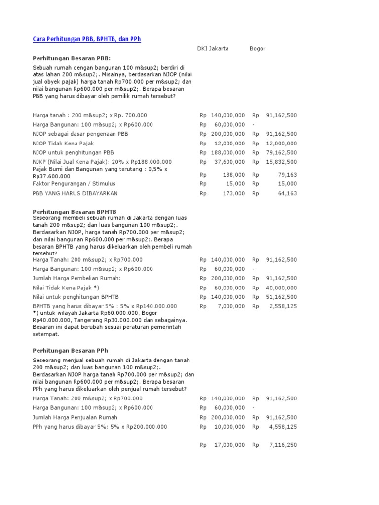 Contoh soal perhitungan pbb. Kurs menkeu senilai rp 915000 dan kurs bi senilai rp 905000. Pbb atau pajak bumi dan bangunan adalah pajak yang dikenakan atas bumi dan bangunan yang dimiliki dikuasai atau dimanfaatkan. Pak budi memiliki rumah dengan luas bangunan 80 meter persegi yang yang berdiri di atas sebidang tanah seluas 100 meter persegi. Di bawah ini akan diberikan contoh cara perhitungan pajak bumi dan bangunan pbb. Jadi pbb yang harus dibayar oleh pak samiun adalah rp. 140000 tahun.