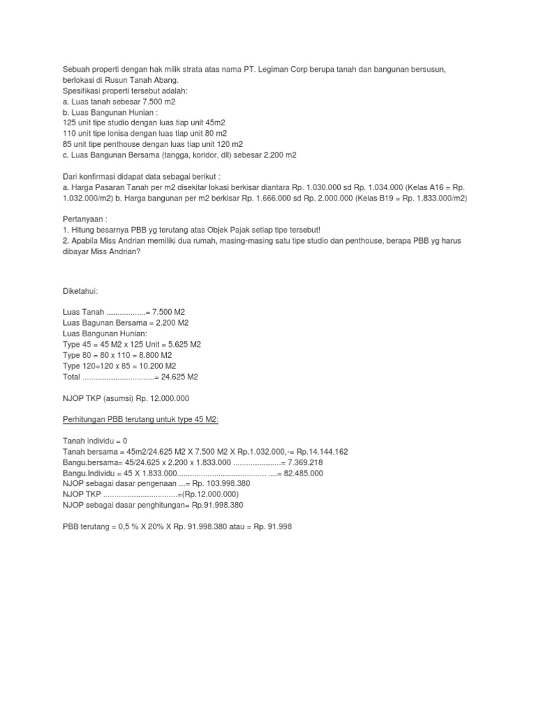 1 areal produktif 85 x rp 100000000000 rp 850000000000. Untuk mendapatkan nilai pbb kita harus terlebih dahulu mengetahui njkp nya. Contoh penghitungan pbb atas rumah susun dan apartemen. Njkp nilai jual kena pajak. Pahami soal njop pbb dan bphtb agar mendapat untung. Hitung pbb yang harus dibayar oleh pt warna lestari dengan njoptkp sesuai dengan permen no.