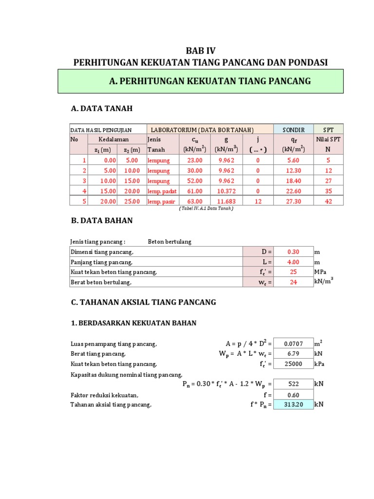 Contoh perhitungan beban normal maksimum n81407 ton. Daya dukung berdasarkan kekuatan bahan paptbkastau. Hitung beban maksimum yang dapat dipikul pondasi bla sf 3. P daya dukung tiang pancang ijin kg ap luas penampang tiang pancang cm2 as luas tulangan tiang pancang cm2 tbk tegangan ijin beton kg. Hitung penurunan pondasi akibat konsolidasi tanah lempung dengan anggapan. Analisa daya dukung pondasi tiang pancang 1.