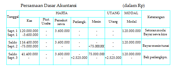 Mungkin kita pernah mendengar kalimat akuntansi kalau salah catat dari awal maka akan salah hingga seterusnya benar bukan pendapat yang demikian itu bisa dianggap benar maka sangat penting untuk. Sekarang kita akan mencoba membuat sebuah contoh kasus untuk persamaan dasar akuntansi yang mudah untuk di mengerti. Nah di kesempatan kali ini kamu bisa simak penjelasan tentang bagaimana analisis transaksi dan pencatatannya dalam persamaan dasar akuntansi di bawah ini. Persamaan akuntansi akan selalu dalam keseimbangan yang berarti sisi kiri harus selalu sama sisi kanan yang artinya setiap terjadi transaksi harus dicatat seimbang dalam dua aspek yaitu sisi kiri aktiva dan. Contoh soal persamaan dasar akuntansi 1 pada tanggal 1 januari 2017 krisna mendirikan sebuah usaha pencucian mobil yang diberi nama clean. Persamaan dasar akuntansi pencatatan transaksi usaha yang terjadi dalam perusahaan dilakukan berdasarkan konsep persamaan akuntansi.