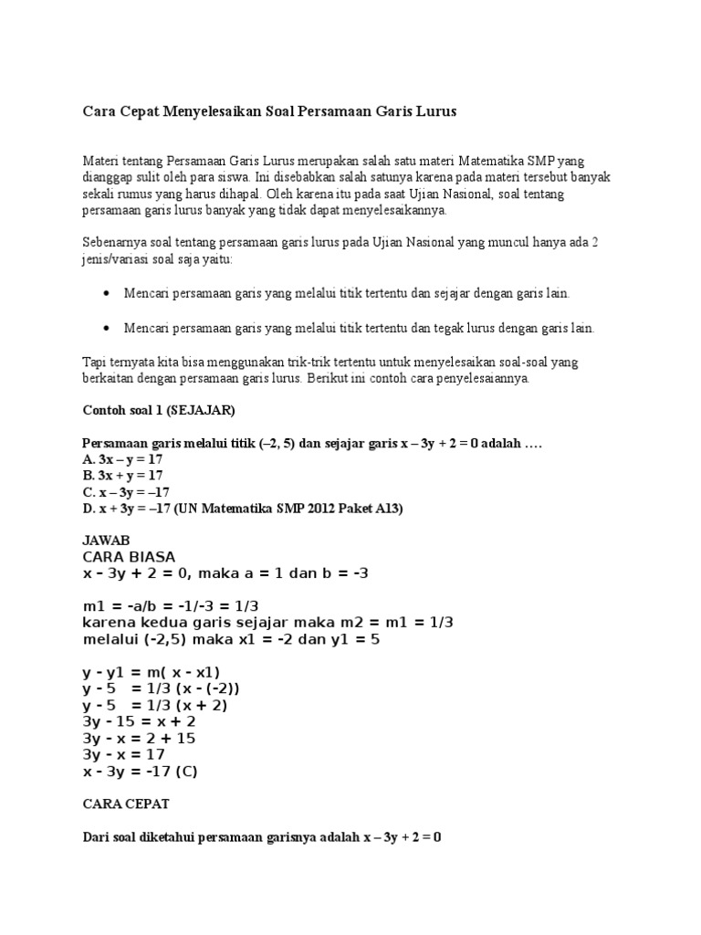 Persamaan garis lurus pgl. Kumpulan soal matematika kelas xi smk deewani p sumbadra. Pelajari contoh contoh soal berikut untuk menambah kefahaman tentang persamaan garis. Belajar persamaan garis lurus materi matematika smp kelas 8 semester 2. Persamaan garis singgung lingkaran kelas xi. Contoh soal persamaan garis singgung lingkaran materi ini diberikan kepada murid kelas xi program studi mipa ketika semester 2.