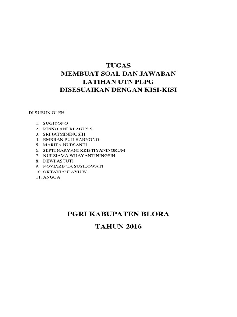Contoh soal plpg 2016 dan kunci jawaban. Inilah soal plpg ipa smp 2016 dan kunci jawaban. Sebelum menyantap 50 soal berikut mungkin baiknya kita tahu dulu apa itu pedagogik. Contoh file materi plpg sertifikasi guru tahun 2016 terlengkap semua bidang studi gratis. Berikut ini adalah kisi kisi ukg 2015 terbaru lengkap dari kemendikbud yang merupakan kumpulan file dari berbagi sumber kisi kisi ukg 2015uji kompetensi guruukg 2015 tentang soal plpg 2016 dan kunci jawaban pdf. Soal plpg 2016 dan kunci jawaban. Berikut ini adalah kumpulan dari berbagi sumber tentang contoh soal ukg sd dan kunci jawaban pdf yang bisa gunakan untuk downloadplpg dan diunduh secara gratis dengan menekan tombol download.