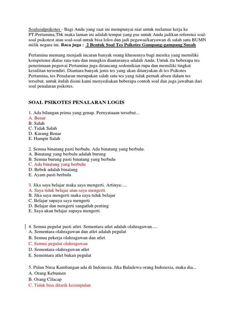 Fyi tujuan saya disini sharing contoh soal aja yang murni dari hasil googling dan pengalaman psikotest psikotest saya sebelumnya hehe. Itu hasil dari rangkuman contoh contoh soal psikotest pertamina. Contoh soal psikotes matematika beserta jawabannya. Soalsoalpsikotes bagi anda yang saat ini mempunyai niat untuk melamar kerja ke ptpertaminatbk tahun 2018 maka laman ini adalah tempat yang pas untuk anda jadikan referensi soal soal psikotest atau soal soal untuk bisa lolos dan jadi pegawaikaryawan di salah satu bumn milik negara ini.