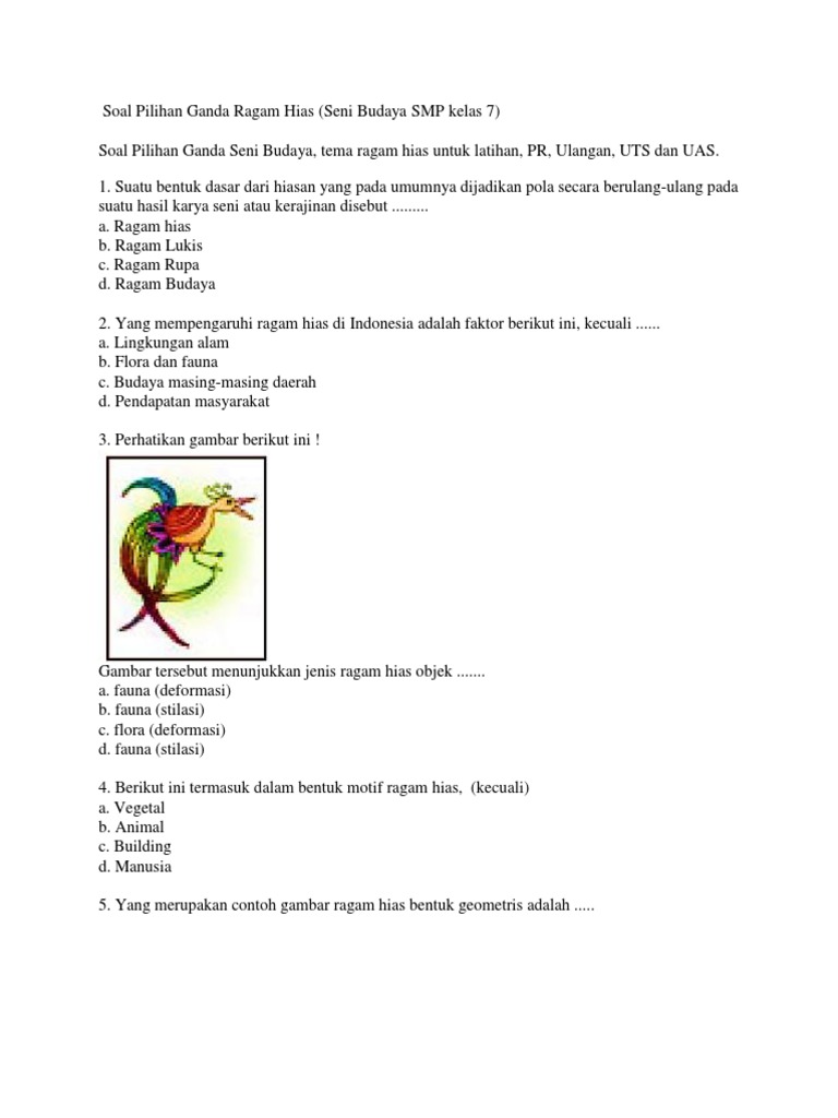 Contoh soal seni budaya. Tempatkan tanda silang x di depan huruf a b atau c sebelum jawaban yang benar. Teknik lempengan sleb d. Soal seni budaya kelas 10 hal ini adalah mata pelajaran yang tidak asing lagi yang di temukan disekolahan menengah atas smamasmk semester 1 2 dan sebagai salah satu mata pelajaran dengan menonjolkan bakat atau sebagai keterampilaan di sekolah negri atau swasta kelas 123 smamasmk semester 1 2 maka kami disini menyampaikan contoh soal seni budaya kelas 10 x smamasmk pg dan. Contoh soal seni budaya kelas 10 sma ma semeter 1 dan semester 2 lengkap dengan kunci jawabannya 2019. Contoh soal skb guru seni budaya 2018 adalah merupakan postingan yang akan saya bagikan kali ini. Aktivitas menggambar yang digunakan model sebagai objek gambar disebut a.