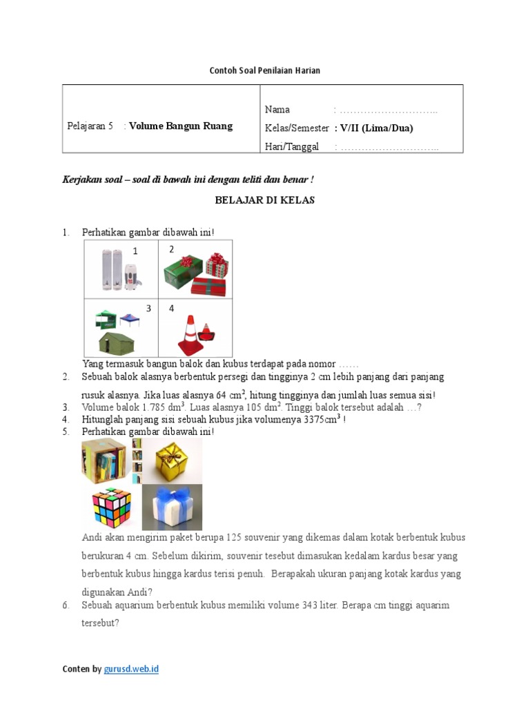Contoh soal volume bangun ruang. Contoh soal volume bangun ruang sd yang dimuat dalam halaman ini merupakan kumpulan soal dengan materi volume bangun ruang sesuai level kognitif penalaran dalam kisi kisi un terbaru. Rumus volume bangun ruang seperti pembahasan sebelumnya bangun ruang adalah bangun matematika yang memiliki isi atau volume. Dalam matematika terdapat beberapa bangun ruang salah satunya adalah tabungtabung merupakan bangun ruang yang dibatasi oleh dua sisi yang kongruen dan sejajar yang berbentuk lingkaran serta sebuah sisi lengkung. Dan berikut ini adalah rumus volume bangun ruang yang meliputi balok kubus prisma tegak segitiga limas segi tiga limas segi empat tabung kerucut. Banyak yang belum memahami dengan baik tentang penyelesaian masalah tabung baik dari definisi unsur unsur dan penentuan rumus rumus pada tabung. Pengertian lain dari bola merupakan bangun ruang berbentuk setengah lingkaran diputar mengelilingi garis tengahnya.