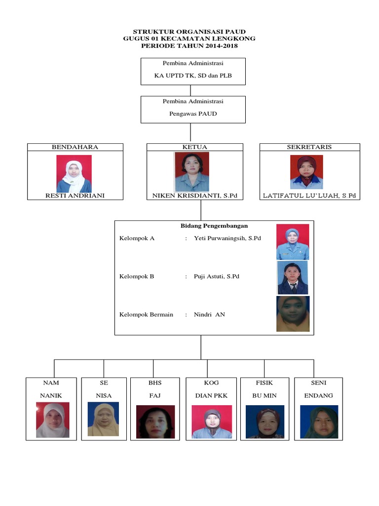 Contoh struktur organisasi paud. Menerima ajaran agama yang dianutnya ki. Contoh struktur organisasi paud lengkap dengan rincian tugas dan kewajibannya dalam kesempatan kali ini saya akan share mengenai struktur organisasi yang ada pada lembaga pendidikan anak usia dini yang juga saya sertakan dengan rincian tugasnya. Contoh struktur organisasi paud 2018. Tentu yang namanya organisasi harus mempunyai struktur yang pasti agar tugas tugas yang menjadi ruang lingkup kelas itu dapat dengan jelas dibagi bagi. Download contoh struktur organisasi paud tk kb tugasnya. Download contoh struktur organisasi yayasancdr.