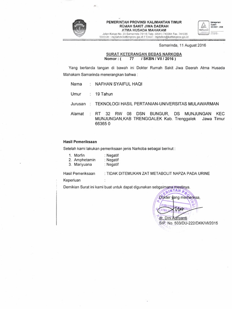 Bantul 14 agustus 1995. Selain itu kita juga bisa membuat surat pernyataan pribadi tetapi. Contoh surat keterangan bebas narkoba dari rumah sakit atau dari laboratorium kompeten memang sangat di butuhkan untuk mendukung kegiatan tertentu.