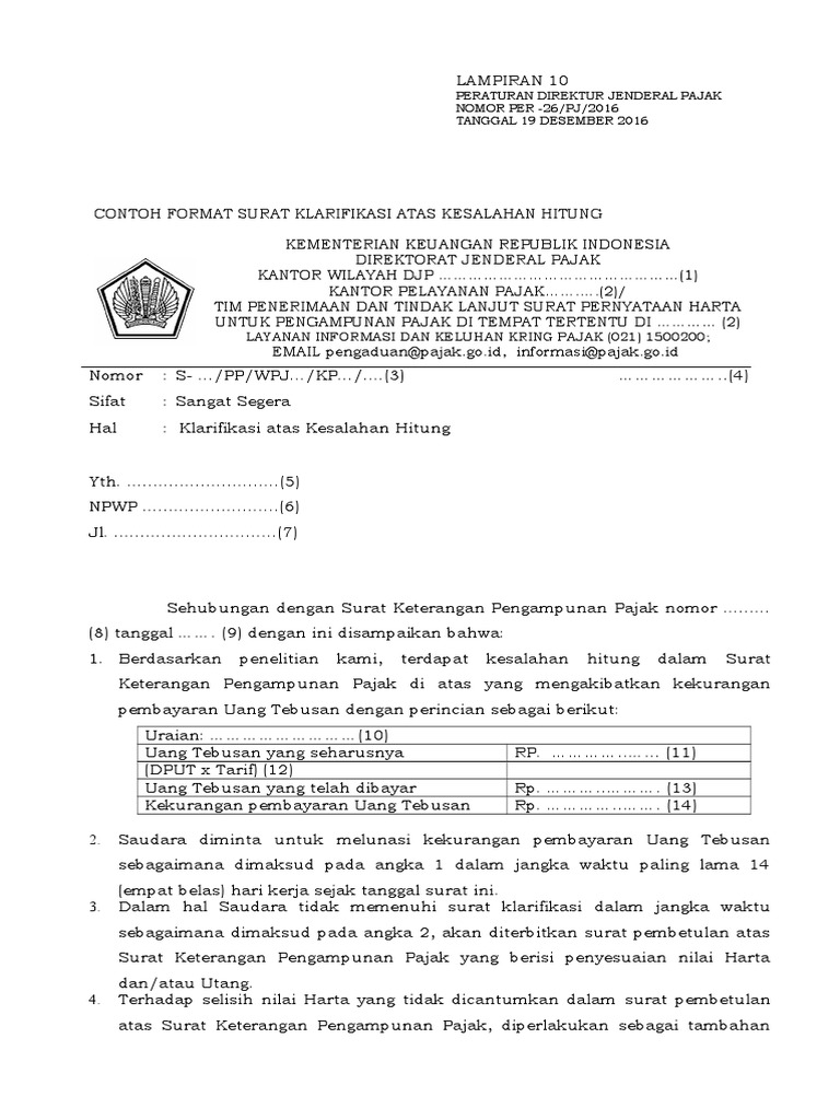 Misalnya anda atau perusahaan yang anda pimpin dituding melakukan tindak pelanggaran ataupun dicurigai telah melakukan hal hal miring lainnya yang dianggap merugikan pihak lain. Contoh surat penjelasan atas dugaan penyimpangan p. Surat klarifikasi sendiri merupakan surat resmi. Oleh karena itu penting bagi kpp untuk membuat surat himbauan dalam rangka memberitahukan secara resmi kepada wajib pajak perihal dugaan adanya kewajiban perpajakan yang dapat terlewatkan oleh wajib pajak atau untuk sekadar mempertanyakan klarifikasi kepada wajib pajak terkait data yang dimiliki sehubungan dengan kegiatan usaha wajib pajak sebagaimana hal ini telah diatur oleh se 39pj2015. Pelimpahan kewenangan pemerintah kabkota bidang p. Permohonan pembatalan akta hibah.