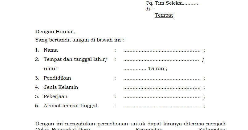 Contoh surat lamaran perangkat desa. Maka benar saja dalam ulasan ini kami mencoba memberikan penjelasan dan contoh format surat lamaran perangkat desa yang benar. Dimana contoh surat ini telah disesuaikan dengan keadaan yang diinginkan pelamar kerja calon perangkat desa. Contoh surat permohonan menjadi bakal calon perangkat desa atau sekretaris desa berdasarkan peraturan bupati kendal no51 tahun 2017 pasal 12 ayat 2. Demikian telah disampaikan contoh surat lamaran kerja perangkat. Dimana sampel surat ini telah disesuaikan dengan keadaan yang diinginkan oleh calon pemohon aparat desa. Contoh surat lengkap surat ijin surat lamaran kerja perintah resmi permohonan keterangan undangan dinas niaga jalan dukungan pengantar.