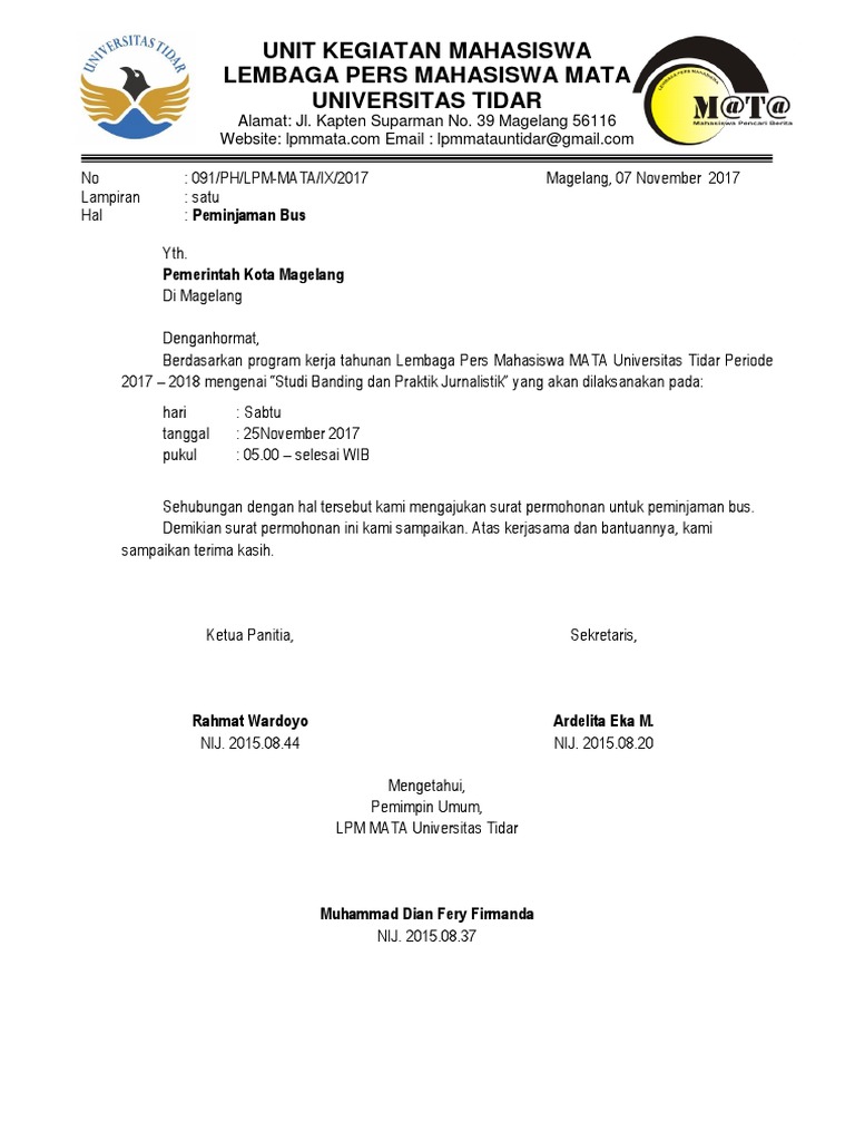 Contoh surat peminjaman bus. Yogyakarta 16 november 2011. Kwartir ranting 0411 07 ukui. Kami selaku kepala sekolah dan dewan guru sdn pangeran 1 bermaksud untuk mengajukan permohonan peminjaman bus dinas provinsi kal sel sebagai transportasi guna kelancaran pelaksanaan kegiatan tersebut dengan jumlah peserta rombongan 50 orang. Contoh surat permohonan peminjaman bus gerakan pramuka. Demikian surat ini kami buat dan kami ajukan. 1 lembar kepada yth wakil rektor ii uny di yogyakarta.