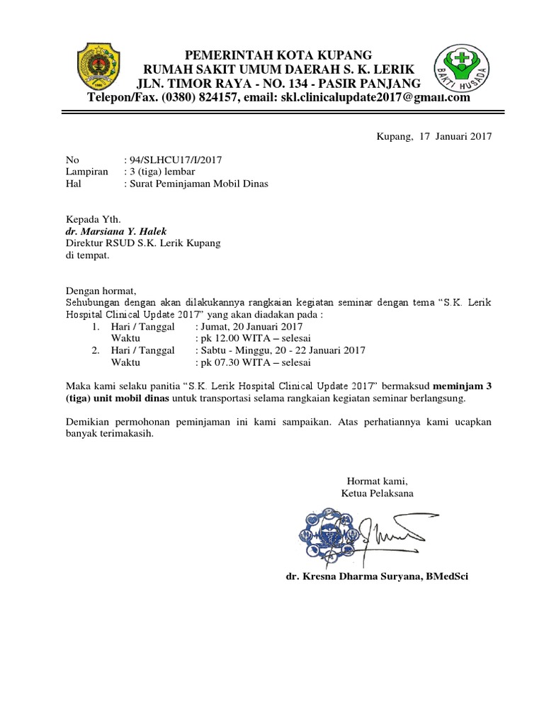 Contoh surat permohonan kendaraan dinas peminjaman mobil dinassurat peminjaman mobil dinas besar harapan saya agar peminjaman kendaraan tersebut dapat terealisasi. Hanya saja anda menyertakan permohonan untuk perminjaman mobil tersebut di bagian isinya. Perlu diketahui penulisan surat tidak bisa asal saja semua itu karena surat adalah. Surat peminjaman bus contoh surat peminjaman surat permohonan pinjam mobil dinas surat permohonan pinjam mobil dinas surat jalan kendaraan dinas. Bandung 19 desember 2011 kepada yth. Untuk lebih jelasnya berikut ini adalah contoh surat permohonan peminjaman mobil dinas.