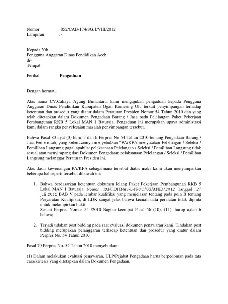 Contoh surat pengaduan surat pengaduan atau klaim adalah surat yang digunakan untuk mengajukan suatu klaim pada perusahaan atau instansi. Contoh surat pengaduan ke dinas lingkungan hidup. Home surat pernyataan contoh surat keluhan pelanggan format resmi contoh surat keluhan pelanggan format resmi surat keluhan adalah sebuah surat yang ditujukan kepada suatu perusahaan atau penyedia barang dan jasa akibat pelayanan atau barang yang kita beli tidak sesuai dengan yang kita harapkan atau kurang baik disitulah kita diperbolehkan untuk komplain atau menyampaikan apa yang tidak. Contoh surat balasan pengaduan barang atau surat balasan atas komplain yang dikirimkan oleh konsumen tentunya akan anda butuhkan sebagai referensi untuk membuat surat surat tersebut. Salah satu contoh surat pengaduan adalah surat pengaduan pergantian barang jika barang yang dikirim mengalami kerusakan. Contoh surat wasiat harta dengan format resmi agar dapat menjadi referensi dalam membuat surat wasiat yang baik dan sah dimata hukum.