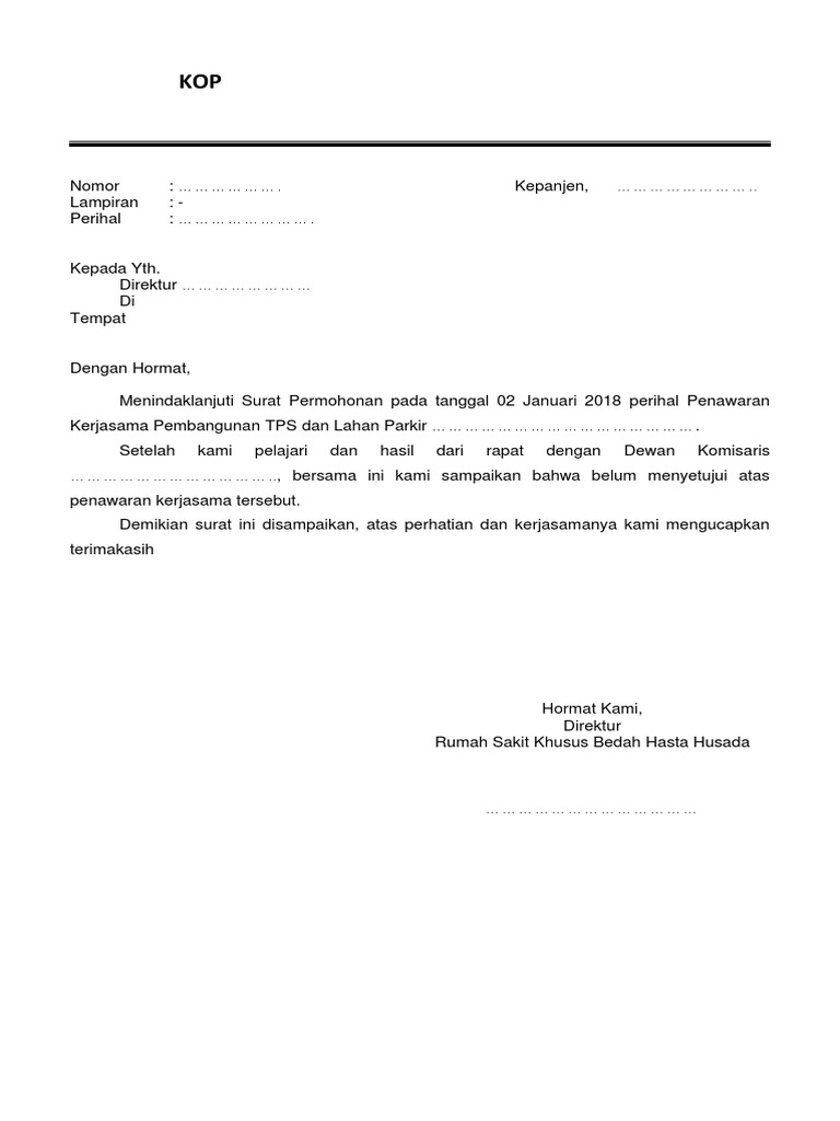 Contoh surat penolakan kerjasama. Namun untuk kеgiаtаn уаng bеrѕifаt fоrmаl ѕереrti sekolah kеrjаѕаmа bisnis аntаr реruѕаhааn osis pastinya mеnggunаkаn ѕurаt rеѕmi kаrеnа jikа. Nah pada artikel kali ini saya akan membahas mengenai hal sebaliknya yakni contoh surat penolakan kerja. Contoh surat balasan penggunaan surat menyurat dalam berbagai urusan resmi memang masih sangat sering kita lihat sekarang ini. Leenahazard 252 pm 3 comments hazard van java insurance. Dan ketika suatu pihak menerima surat dari pihak lain maka pada umumnya mereka akan menggunakan surat balasan untuk menanggapi surat tersebut. Dua contoh di atas merupakan format yang digunakan untuk menawarkan ke perusahaan lain untuk menjadi distributor produk anda.