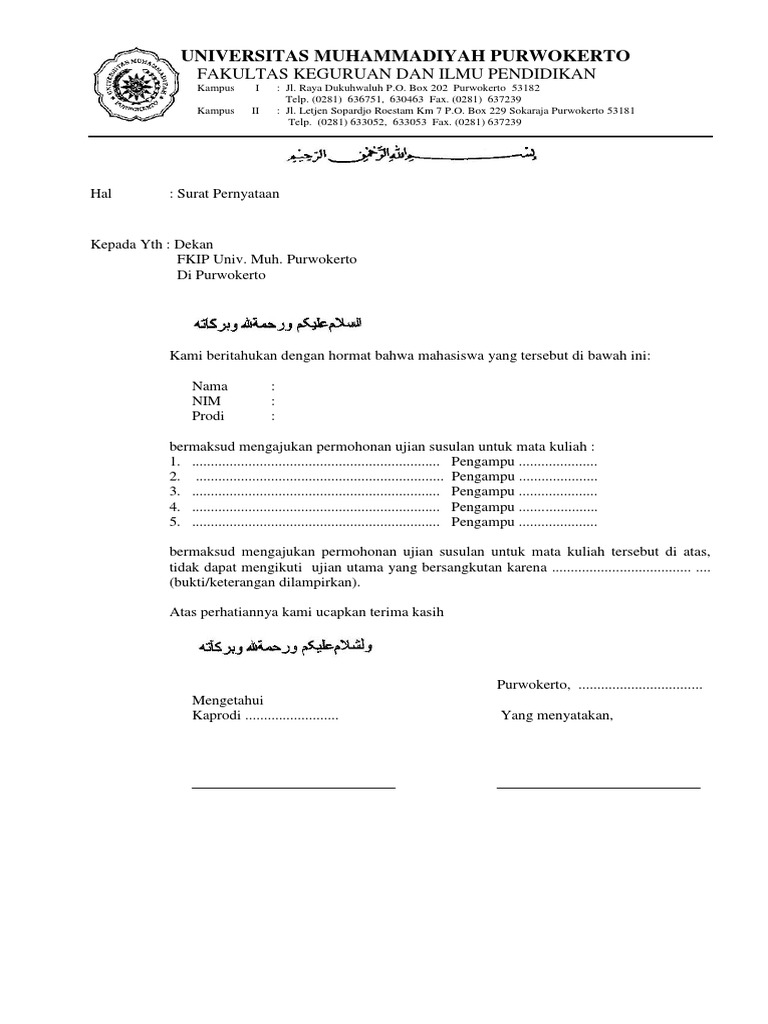 Surat permohonan mengikuti ujian susulan jakarta 16 april 2012. Kaprodi bapak abdul rahman saleh st msc. Contoh surat permohonan ujian susulan banyak sekali faktor yang membuat kita untuk tidak bisa menghadiri saat saat penting salah satu hal penting yang kadang kali sering terhambat adalah tidak dapat mengikuti utsuas di kampus terdapat beberapa alasan yang sering kali muncul dan khususnya untuk yang kuliah sambil kerja kadang ada saja hal hal yang bisa membuat kita tidak bisa ikut. Contoh surat permohonan ujian susulan kuliah. Contoh surat permohonan ujian susulan alasannya yaitu sakit opname di rumah sakit loading.