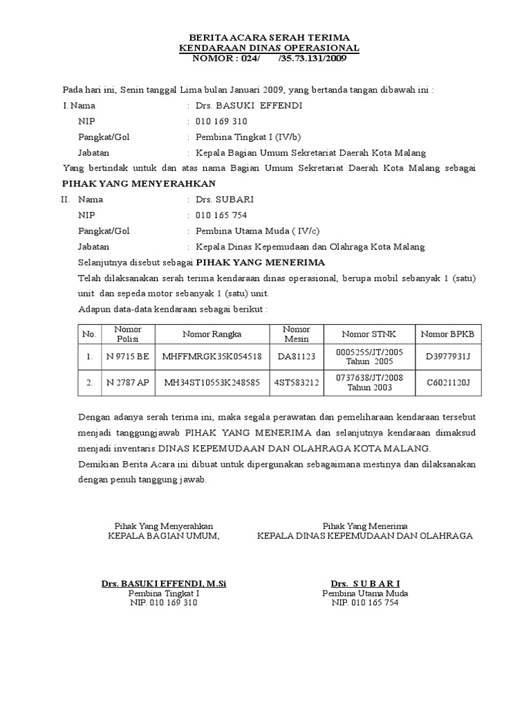 Berita acara serah terima kendaraan. Academiaedu is a platform for academics to share research papers.