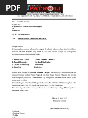 Contoh Surat Tugas Wartawan Kumpulan Contoh Surat Indonesia