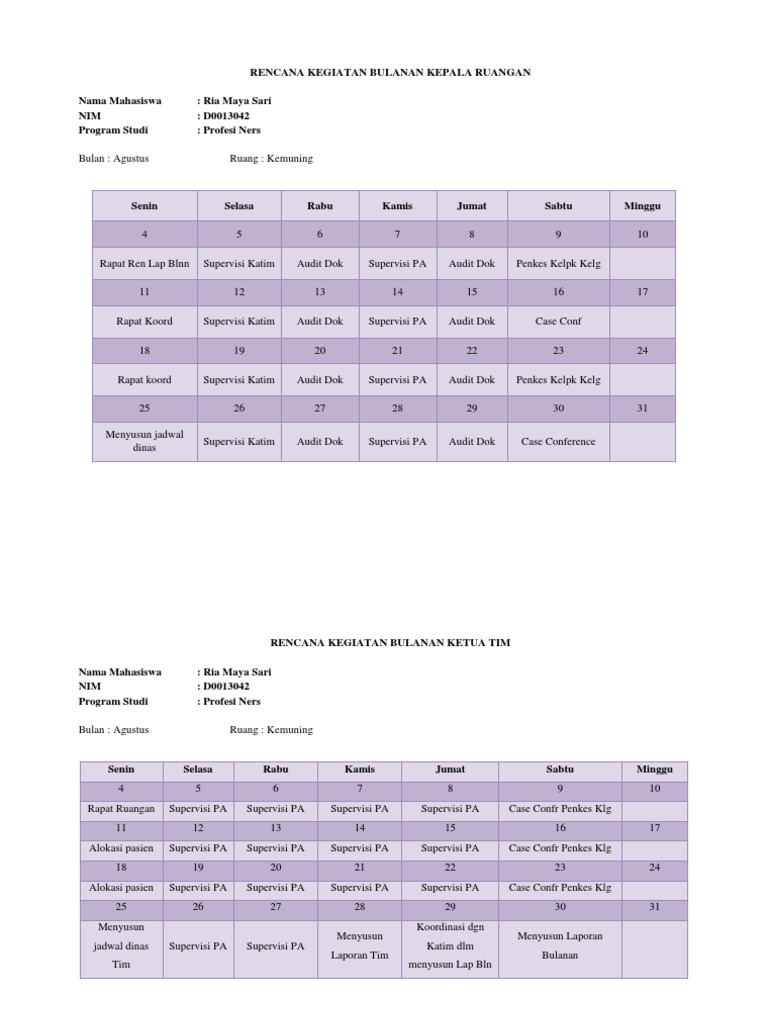 Contoh tabel rencana kerja bulanan. Tugas kewajiban dan kewenangan ahli k3 umum. Contoh agenda kegiatan harian mingguan bulanan dan tahunan contoh agenda kegiatan harian mingguan bulanan dan tahunan selamat pagi semuanya rekanb rekan pada pagi ini saya ingin lagi berbagi tips tentang mengatur jadwal belajar neh. Apa pun tindakan yang akan anda lakukan pada tahap mana pun dalam rencana kerja anda harus melengkapinya dengan jadwal. Jika anda membutuhkan waktu lebih kurang 1 jam untuk membaca 2000 kata untuk membaca artikel 10000 kata sampai selesai anda membutuhkan waktu paling sedikit 5 jam. Laporan bulanan penyuluh agama islam pai non pns laporan pai laporan pai laporan pai non pns contoh laporan pai non pns contoh laporan pai. Langsung saja berikut ini contoh rumus excel hitung anggaran keluarga.