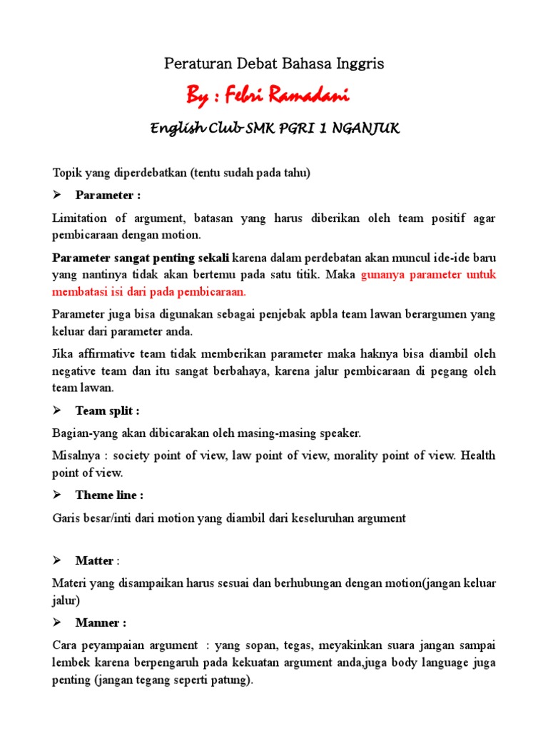 Contoh teks debat bahasa inggris. Contoh debat dalam bahasa inggris english is the most important tool in globalization. Now we have looked from humanism point of view. 2 contoh artikel bahasa inggris tentang lingkungan environment dan artinya pada artikel kali ini admin akan berbagi contoh artikel yang bertemakan lingkungan dalam bahasa inggris. Contoh teks ini juga akan membuat gambaran dan referensi sebelum melakukan lomba debat atau membuat teks debat sendiri. Sukadi debat adalah saling adu argumentasi antar pribadi atau antar kelompok manusia dengan tujuan mencapai kemenangan. Debat adalah kegiatan adu argumentasi antara dua pihak atau lebih baik itu perorangan ataupum kelompok dalam mendiskusikan dan memutusakan masalah dan perbedaan.